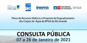 Inicia, a partir desta quinta-feira (07/01), um novo processo de Consulta Pública para elaboração do Planos de Recursos Hídricos (PRH) e da Proposta de Enquadramento (PE) dos Corpos de Água da RPGA do Rio Grande/BA e do Rio Corrente e Riachos de Ramalho, Serra Dourada e Brejo Velho, elaborado pelo Inema (Instituto do Meio Ambiente e Recursos Hídricos) em parceria firmada com a Águas do Oeste Hydros-Engeplu.